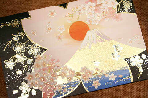 クリスマスカード 和風 桜から覗くゴールド富士山 5枚セット 和風クリスマスカード 日本 海外向け グリーティングカード 和柄 メール便対応商品 クリスマスカード 和風でドキドキ
